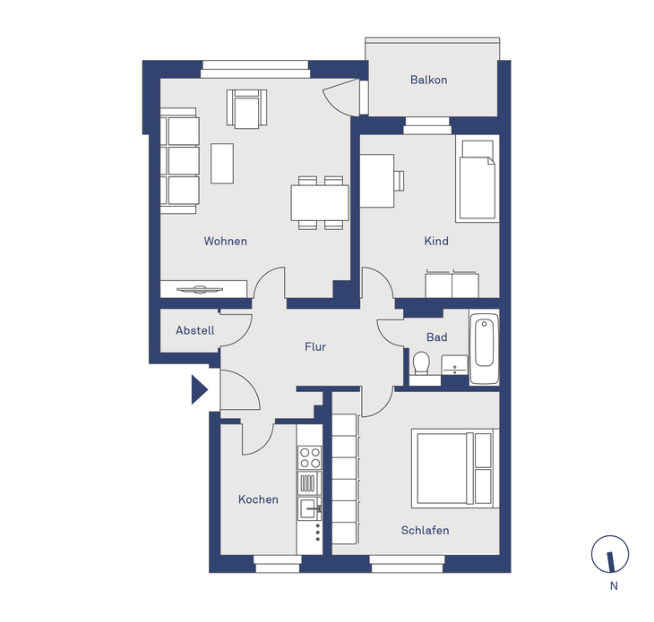 Drei gut geschnittene Zimmer bieten flexible Nutzungsmöglichkeiten. Die separate Küche bietet Platz für eine attraktive Küchenzeile und einen kleinen Frühstückstisch. Das modernisierte Badezimmer sowie die erneuerten Oberflächen unterstreichen den zeitgemäßen Wohnstandard und ermöglichen einen sofortigen Einzug ohne weiteren Aufwand.