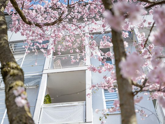 Das karreeförmige Wohnquartier wurde 1992 errichtet und befindet sich in Neuhausen, am südwestlichen Ausläufer des Olympiaparks und in direkter Nachbarschaft des Szeneviertels Schwabing. Fünf separat zugängliche Häuser in autofreier Lage bilden ein architektonisch zeitloses Ensemble. Hier kommt man inmitten der Großstadt zur Ruhe. Dazu trägt auch der großzügige Innenhof mit altem Baumbestand bei. Mit seinen weitläufigen Grünflächen, gemütlichen Sitzbereichen und einladenden Spielgeräten ist er ein gemeinschaftlicher Ruhepol.