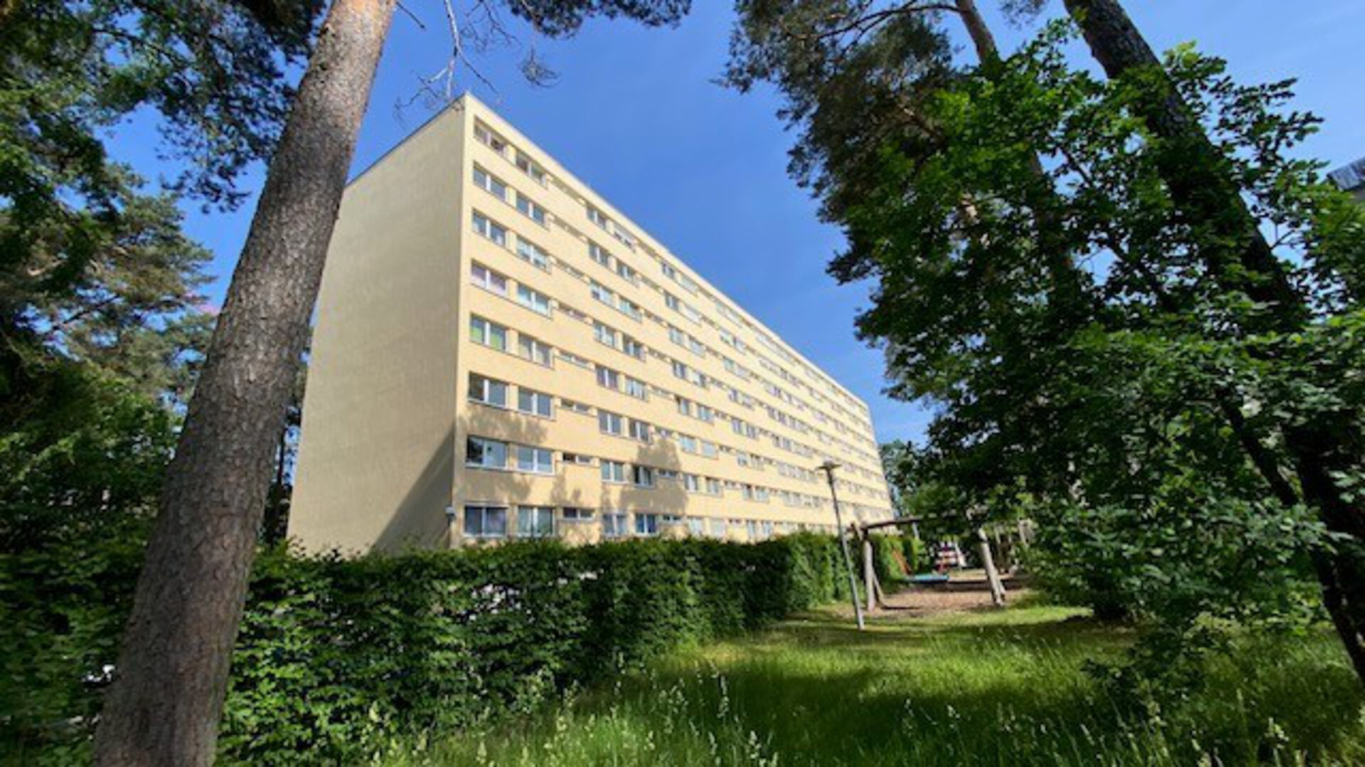 Die Wohnung befindet sich im 1. OG eines Mehrfamilienhauses mit Aufzug. (hält auf halber Etage)